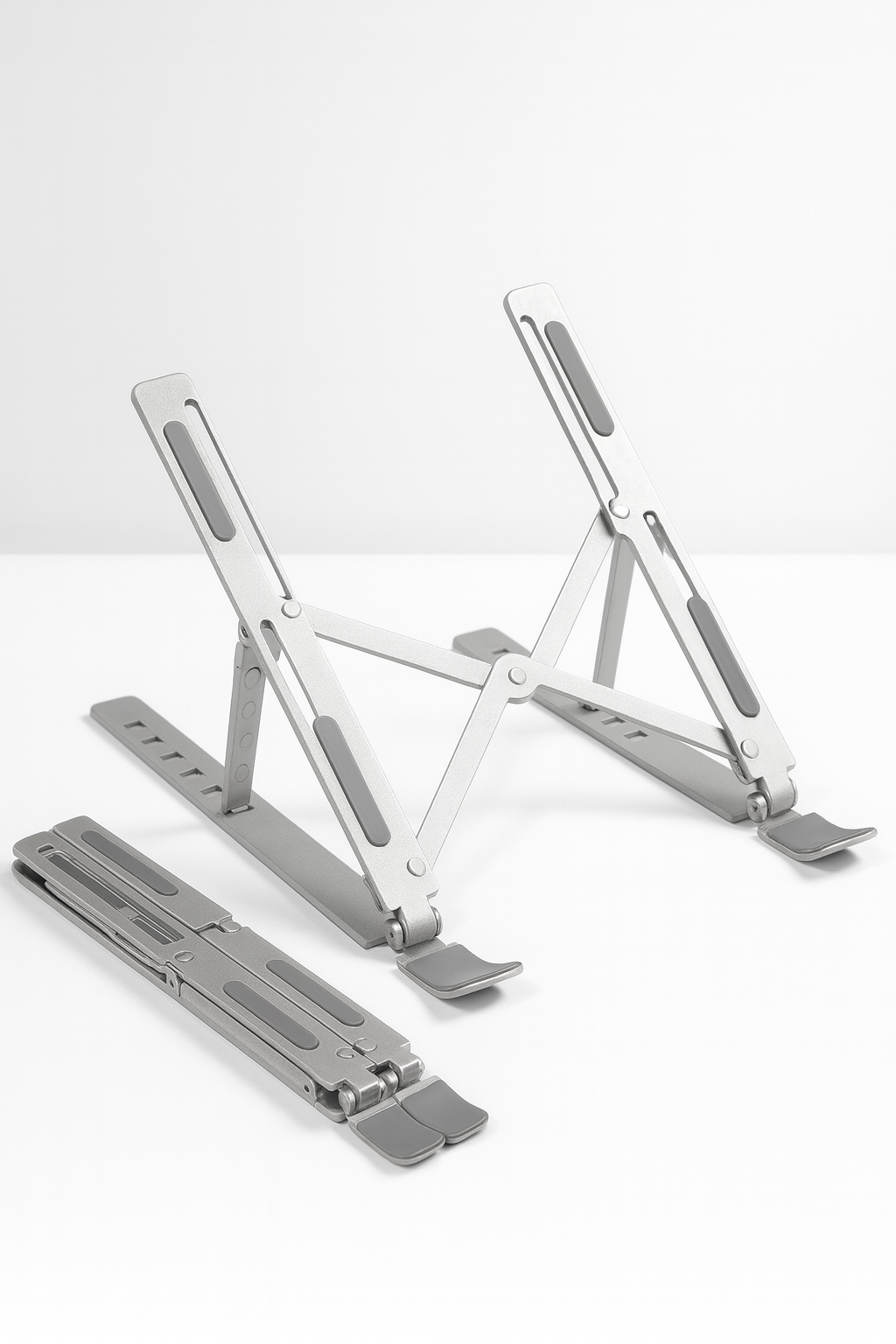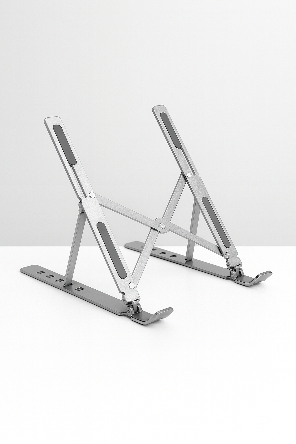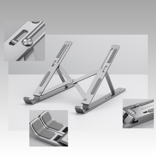 Fabriqué en aluminium léger et solide (moins de 1 kg), avec patins antidérapants en silicone et crochets de sécurité pour une stabilité absolue. Structure pliable ultra-compacte pour vos déplacements et ventilation ajourée qui prévient la surchauffe en libérant la base de votre appareil.